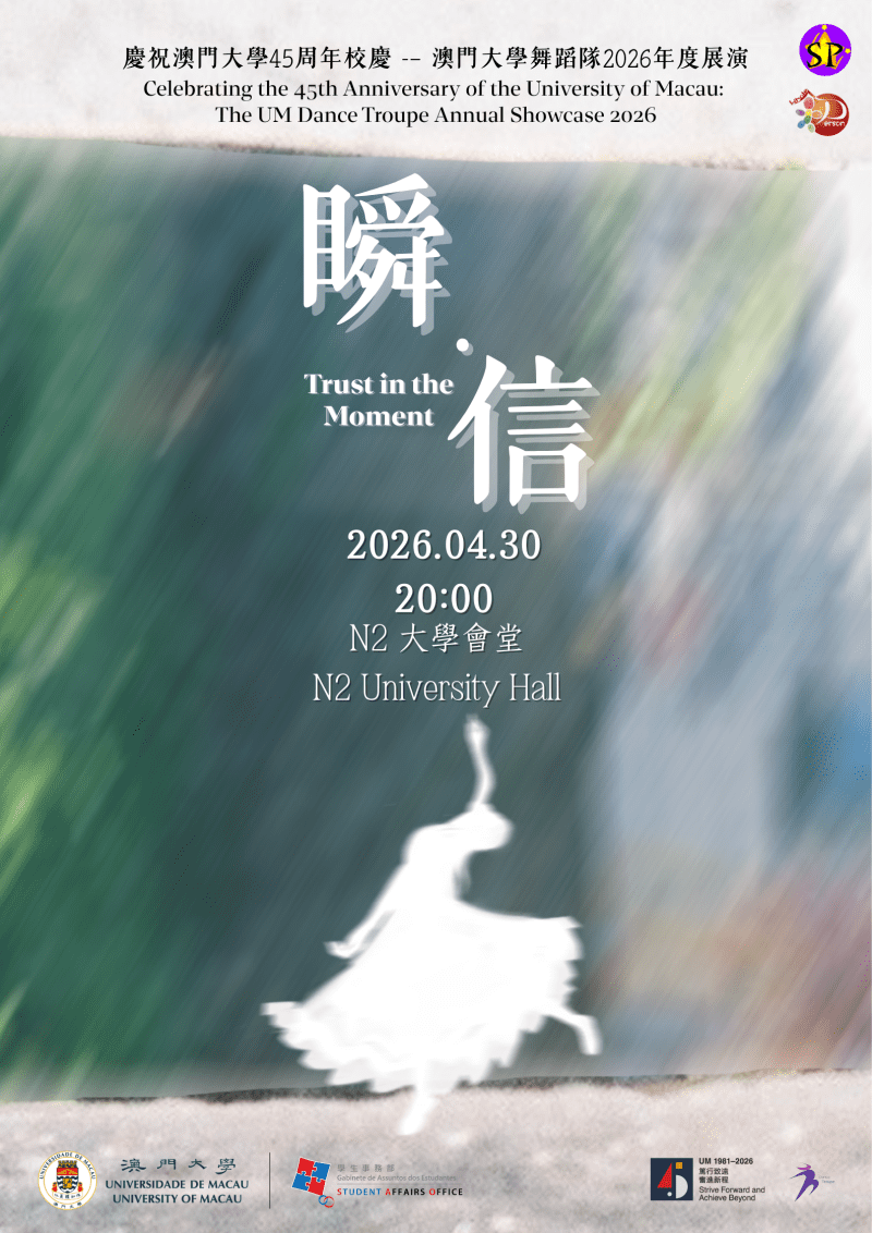 Free Tickets: Celebrating the 45th Anniversary of the University of Macau: The UM Dance Troupe Annual Showcase 2026 “Trust in the Moment” (Date: 30 April 2026, 20:00, N2-Uhall) 1SP & 20.0 “Cultural Engagement” (CS) Gallery Free Tickets: Celebrating the 45th Anniversary of the University of Macau: The UM Dance Troupe Annual Showcase 2026 “Trust in the Moment” (Date: 30 April 2026, 20:00, N2-Uhall) 1SP & 20.0 “Cultural Engagement” (CS) cna, News Free Tickets: Celebrating the 45th Anniversary of the University of Macau: The UM Dance Troupe Annual Showcase 2026 “Trust in the Moment” (Date: 30 April 2026, 20:00, N2-Uhall) 1SP & 20.0 “Cultural Engagement” (CS) sharonkuok Kuok Un Pui2026-04-14T14:58:16+08:00April 14th, 2026|