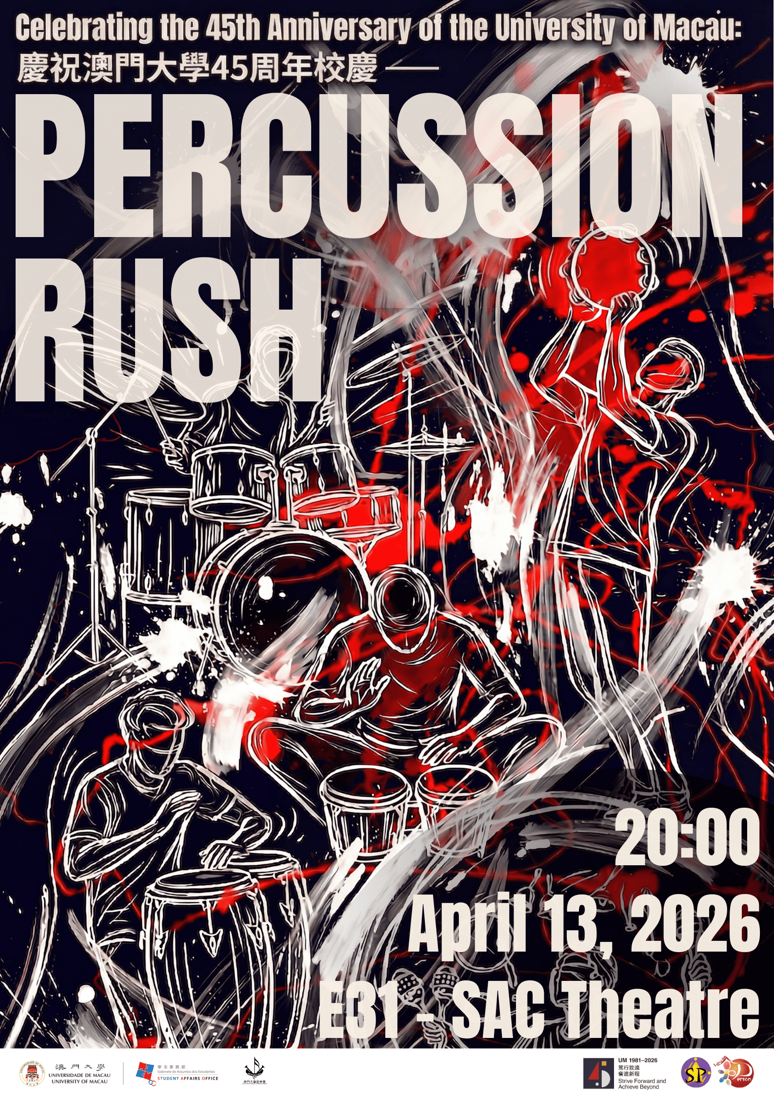Concert Tickets – Celebrating the 45th Anniversary of the University of Macau: UM Symphonic Band Percussion Ensemble Concert “Percussion Rush” (Date: 13 April 2026, 20:00, E31- Student Activity Centre Theatre) 1SP & 15.0 “Cultural engagement” (CS) Gallery Concert Tickets – Celebrating the 45th Anniversary of the University of Macau: UM Symphonic Band Percussion Ensemble Concert “Percussion Rush” (Date: 13 April 2026, 20:00, E31- Student Activity Centre Theatre) 1SP & 15.0 “Cultural engagement” (CS) cna, News Concert Tickets – Celebrating the 45th Anniversary of the University of Macau: UM Symphonic Band Percussion Ensemble Concert “Percussion Rush” (Date: 13 April 2026, 20:00, E31- Student Activity Centre Theatre) 1SP & 15.0 “Cultural engagement” (CS) sharonkuok Kuok Un Pui2026-04-14T14:56:05+08:00April 14th, 2026|